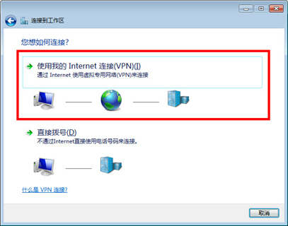 选择 "使用我的 Internet 连接 (VPN)" 。