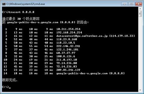 如上图,如果数据包路径是通过 "10.211.254.254" ,你的通信现在就是通过 VPN Gate 公共